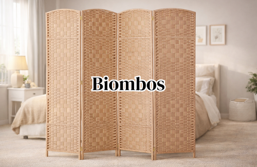 BIOMBO DIVISOR DE AMBIENTES BAMBÚ 4 PANELES BEIGE