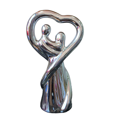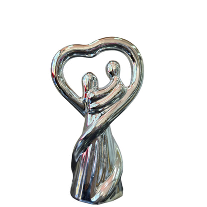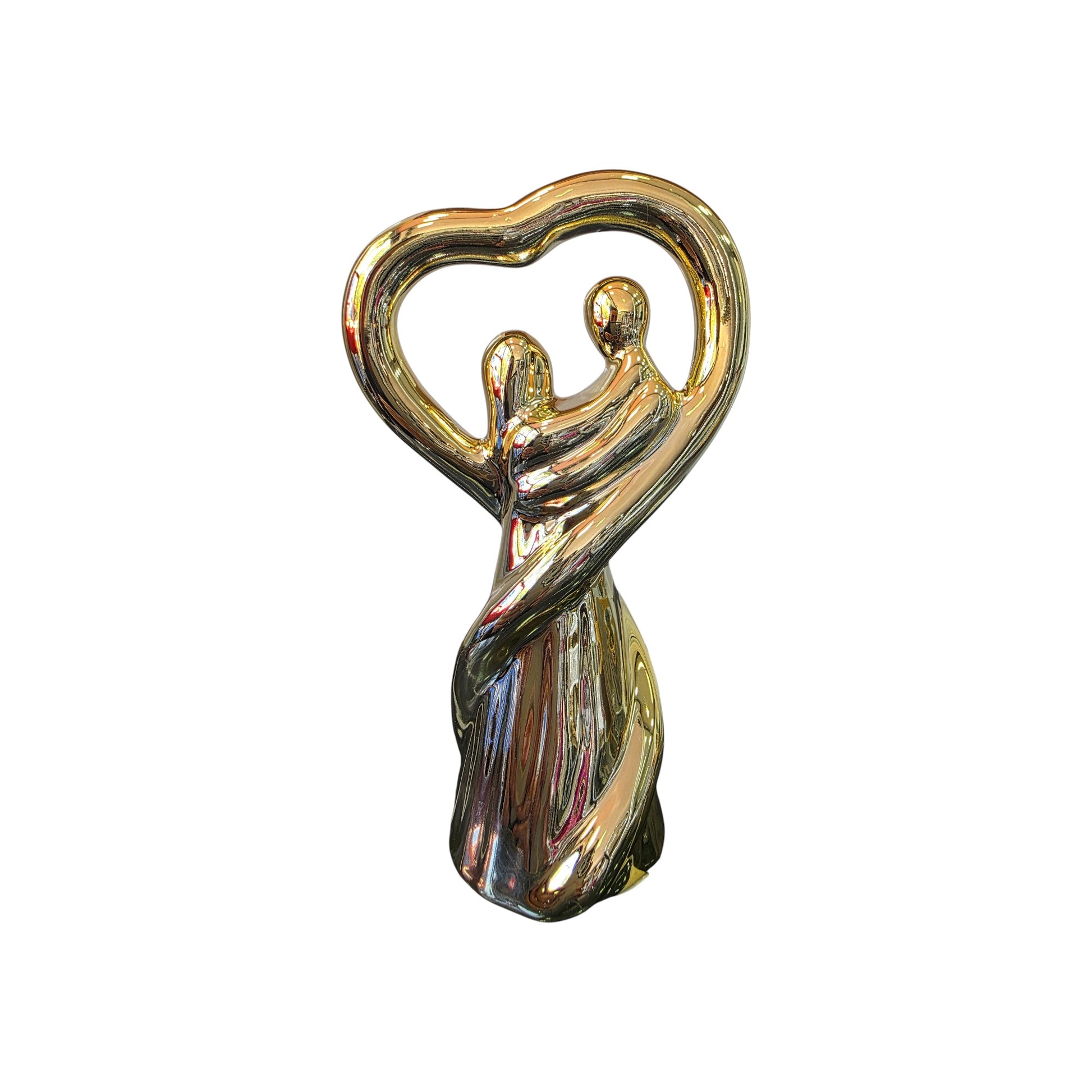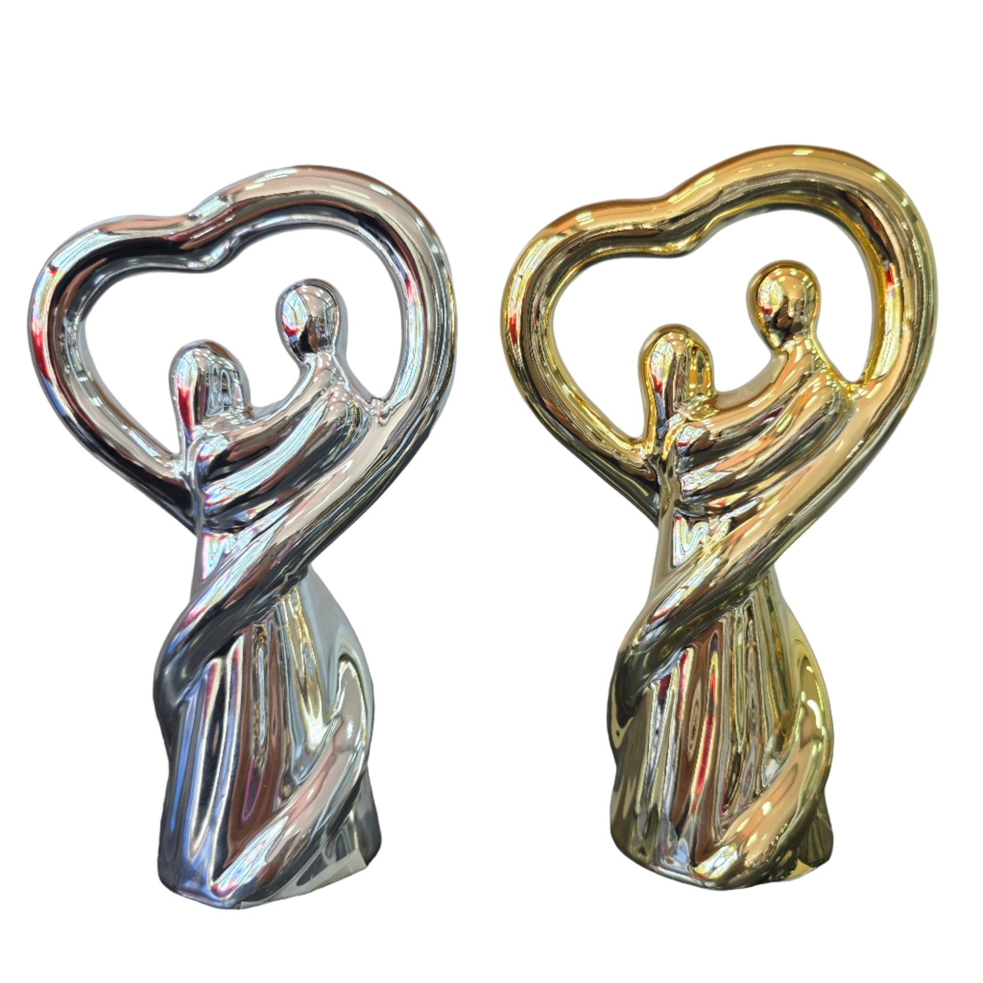 Estas hermosas figuras decorativas representan un tierno abrazo entre dos figuras humanas, simbolizando el amor, la conexión y la unión. Disponibles en acabados de color dorado y plateado, estas piezas aportan elegancia y calidez a cualquier espacio.