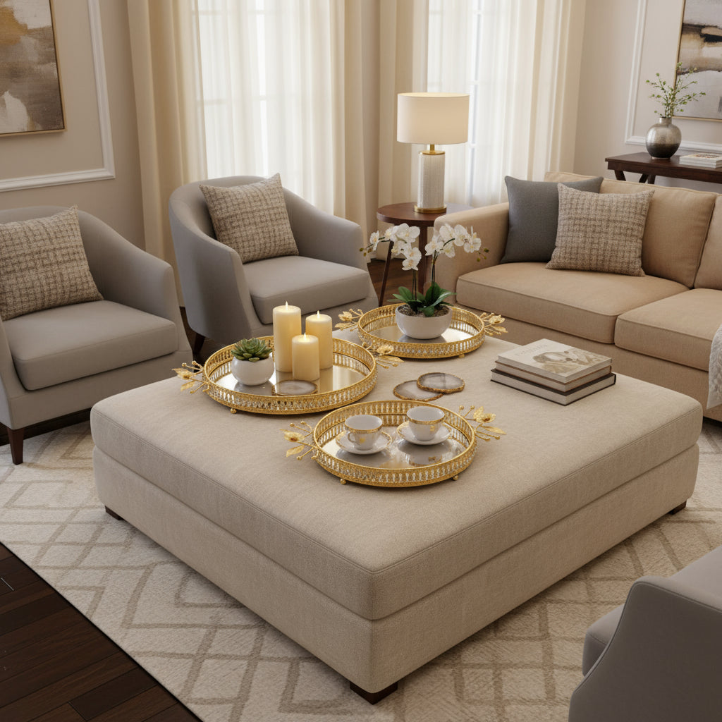 Perfecta para usar en tocadores, comedores o salones, esta bandeja decorativa con espejo dorado permite organizar objetos con estilo mientras aporta un reflejo luminoso que agranda visualmente los espacios.