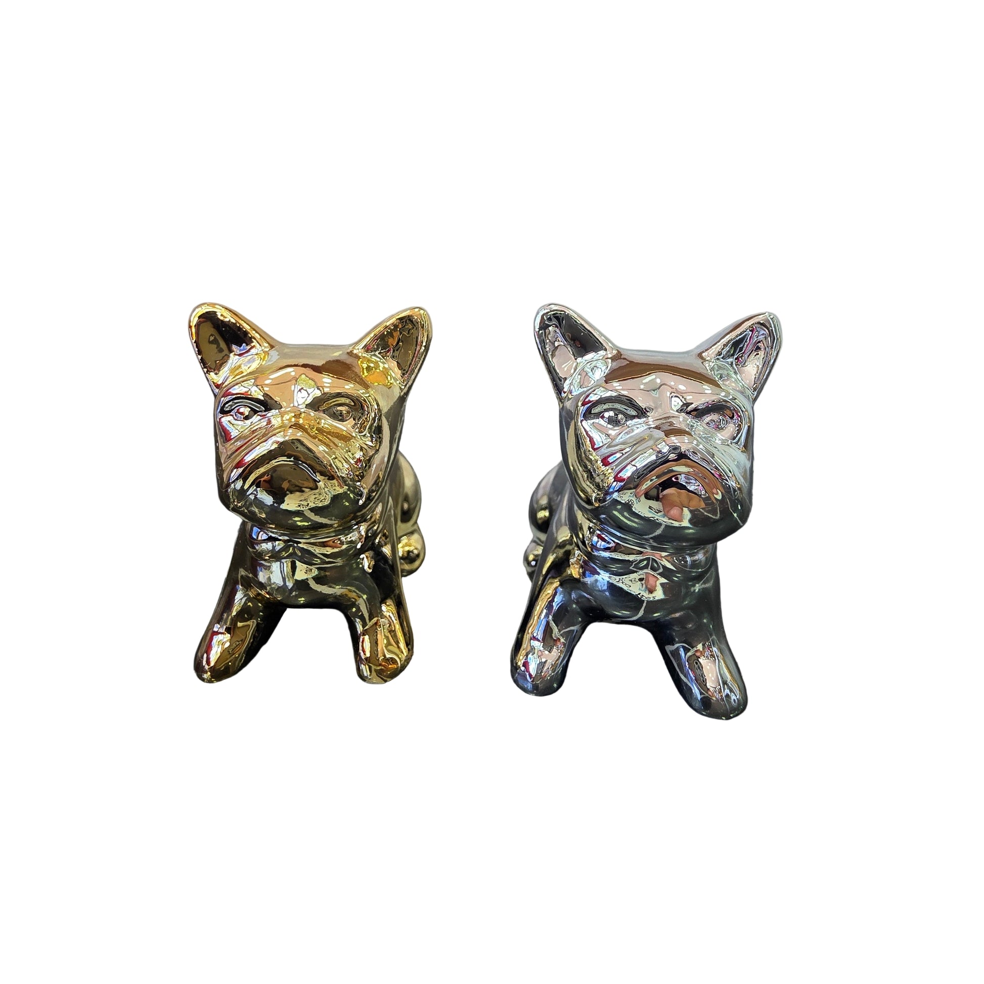 Esta elegante decoración de bulldog combina la majestuosidad del dorado con la sofisticación del plateado, creando una pieza única que atraerá todas las miradas.