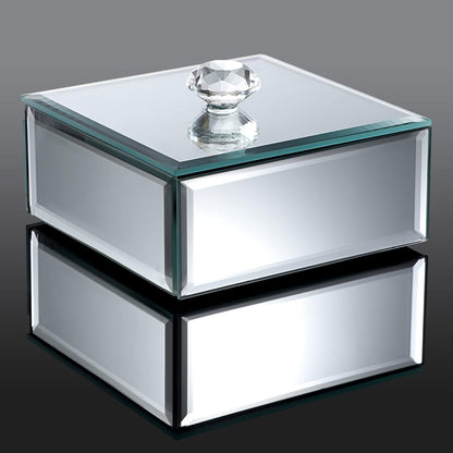 Agrega un toque de elegancia a tu tocador o baño con esta sofisticada Caja Organizadora de Espejo. Diseñada con un acabado de espejo en todos sus lados y una tapa con perilla en forma de diamante, esta caja no solo es funcional, sino también un elemento decorativo de lujo.