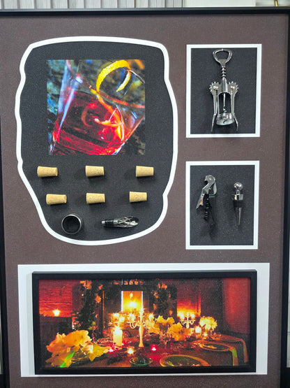 - Incluye diversos accesorios relacionados con el vino, como copas, sacacorchos y etiquetas