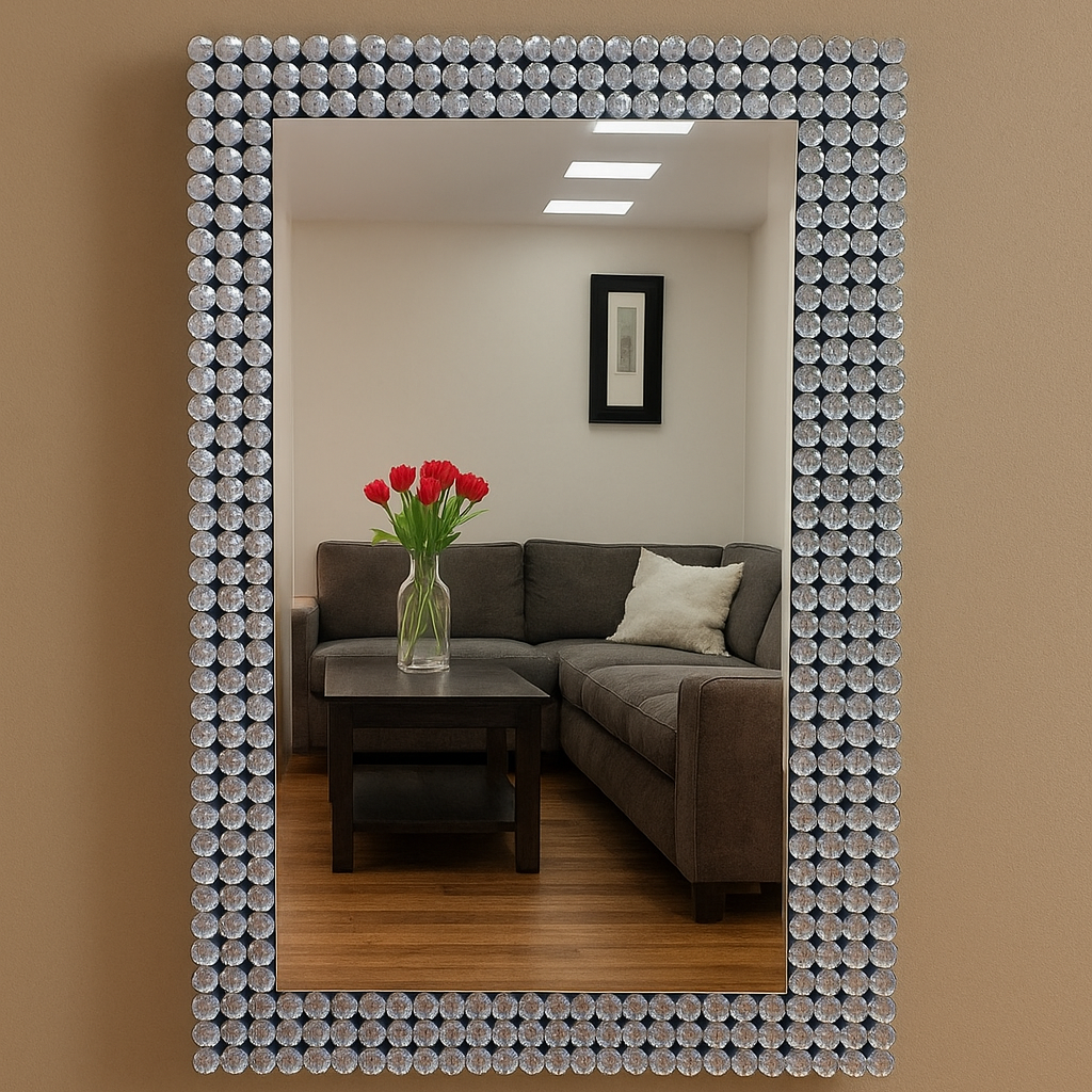 Este espejo es la pieza perfecta para realzar la belleza de cualquier sala de estar, recibidor o dormitorio. Añade un toque de elegancia y brillo a tu hogar con este deslumbrante accesorio.