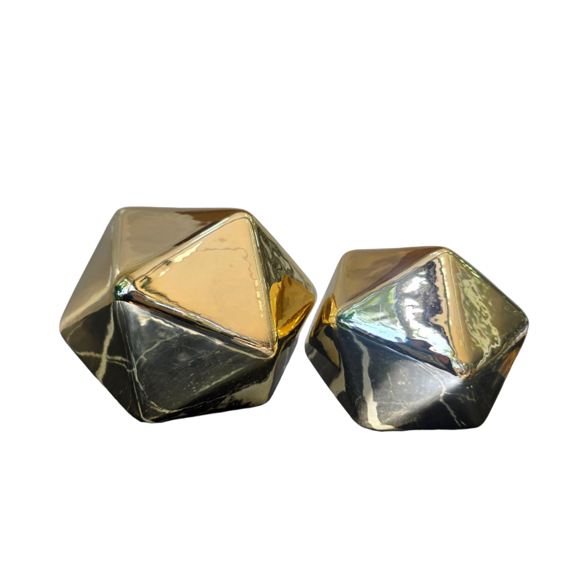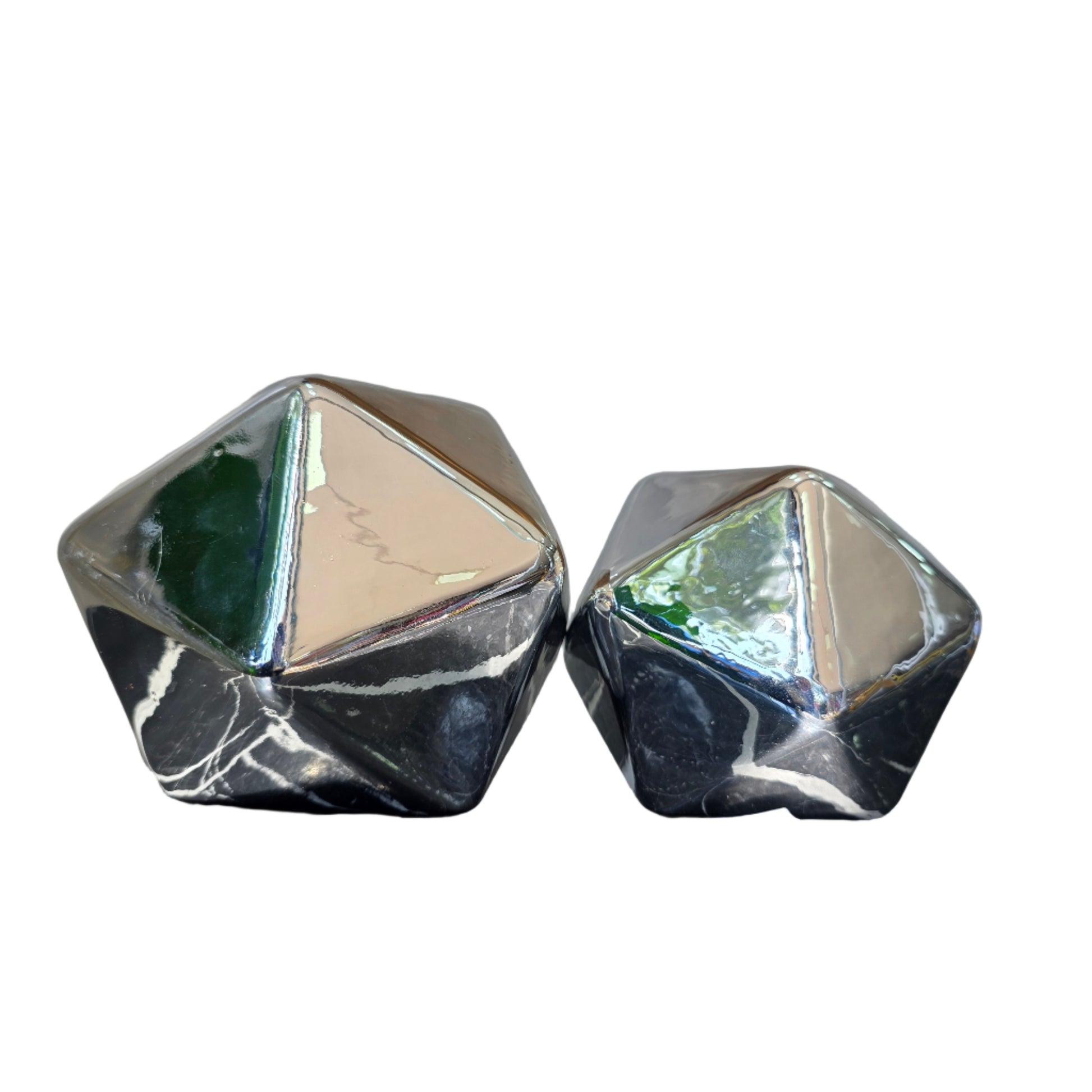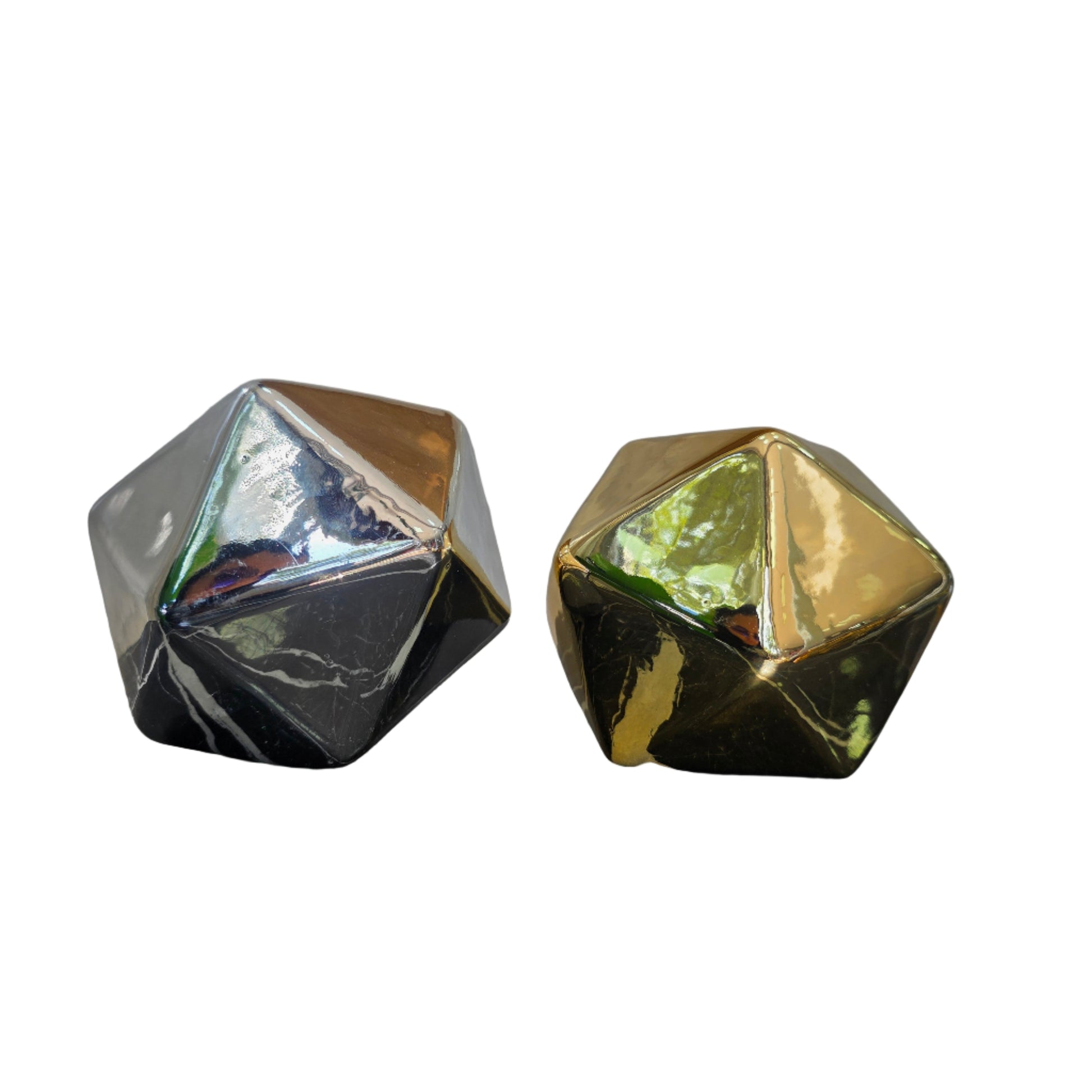 Transforma cualquier espacio con nuestra impresionante Figura Decorativa Facetada, una pieza que irradia modernidad y sofisticación. Disponible en un lujoso acabado dorado brillante o un elegante y contemporáneo acabado plateado, esta figura es el complemento perfecto para añadir un toque de distinción a tu hogar u oficina.