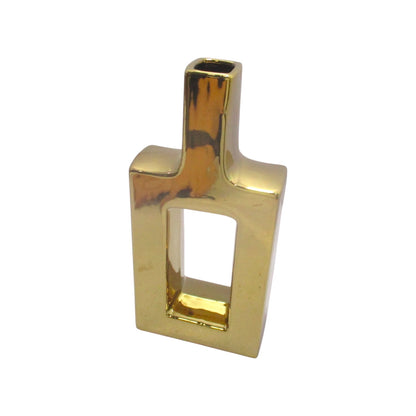 El jarrón dorado con figura rectangular es una pieza decorativa que combina estilo, sofisticación y diseño contemporáneo. Su acabado metálico en dorado aporta un toque de lujo y personalidad, convirtiéndolo en un accesorio perfecto para salas, livings, entradas o dormitorios.