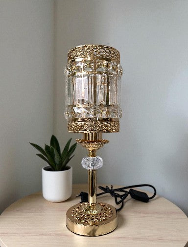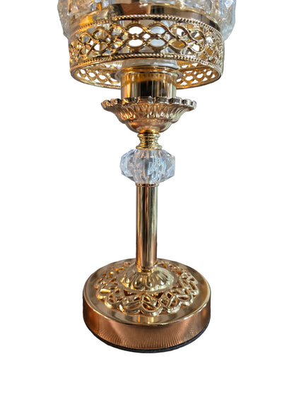 La lámpara de mesa dorada elegante es la pieza ideal para dar un toque de lujo y estilo a tu hogar. Su acabado metálico en tono dorado resalta por su brillo sofisticado, convirtiéndola en un elemento decorativo y funcional a la vez.