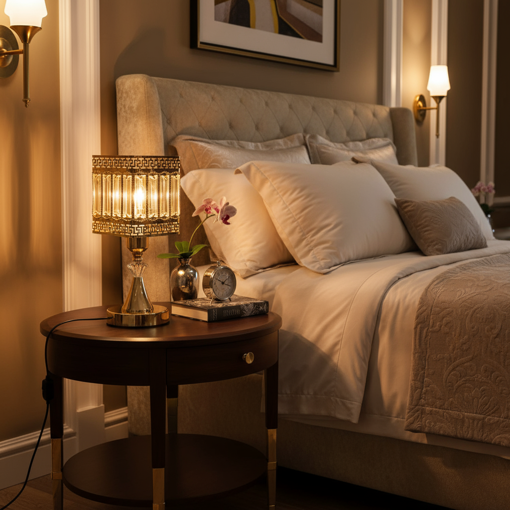 La lámpara de mesa dorada elegante es la pieza ideal para dar un toque de lujo y estilo a tu hogar. Su acabado metálico en tono dorado resalta por su brillo sofisticado, convirtiéndola en un elemento decorativo y funcional a la vez.