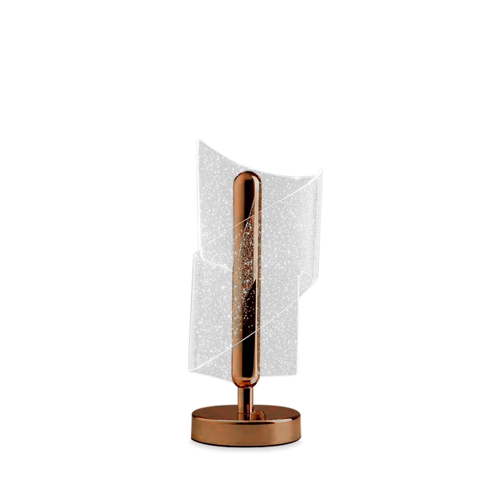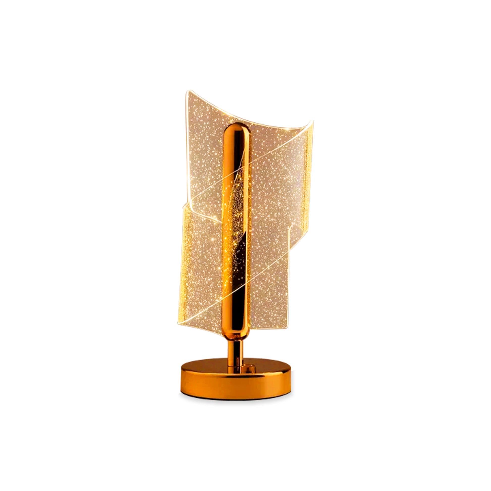 Con su acabado dorado y su figura única y llamativa, esta lámpara se convierte en un objeto decorativo de diseño exclusivo. Perfecta para destacar en salas, dormitorios o espacios pequeños, aporta un toque de glamour y originalidad.