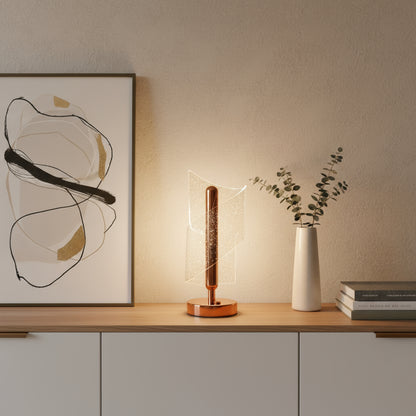 Más que una lámpara, es una pieza artística que ilumina y decora a la vez. Gracias a su tamaño compacto, es ideal como lámpara auxiliar, de mesa o para complementar la decoración de un rincón especial.