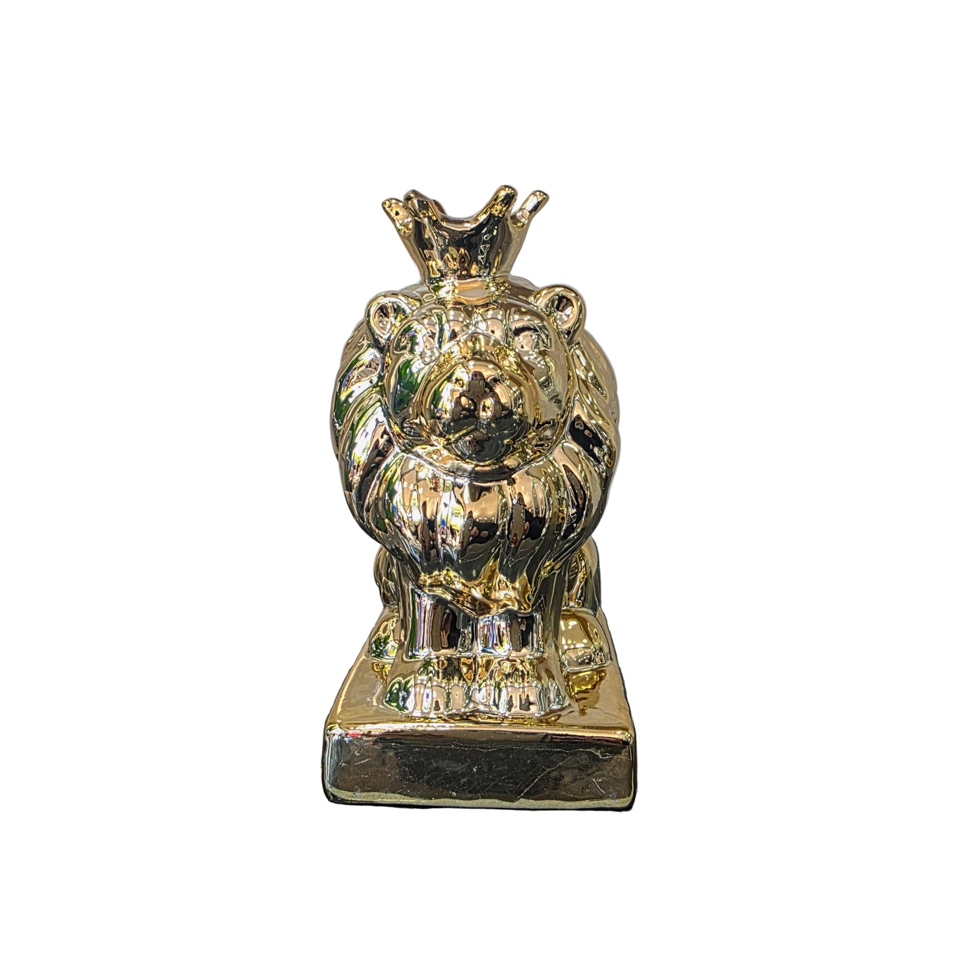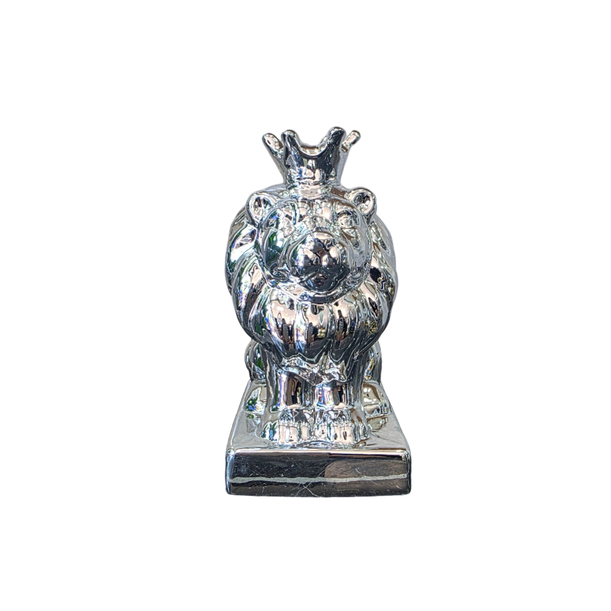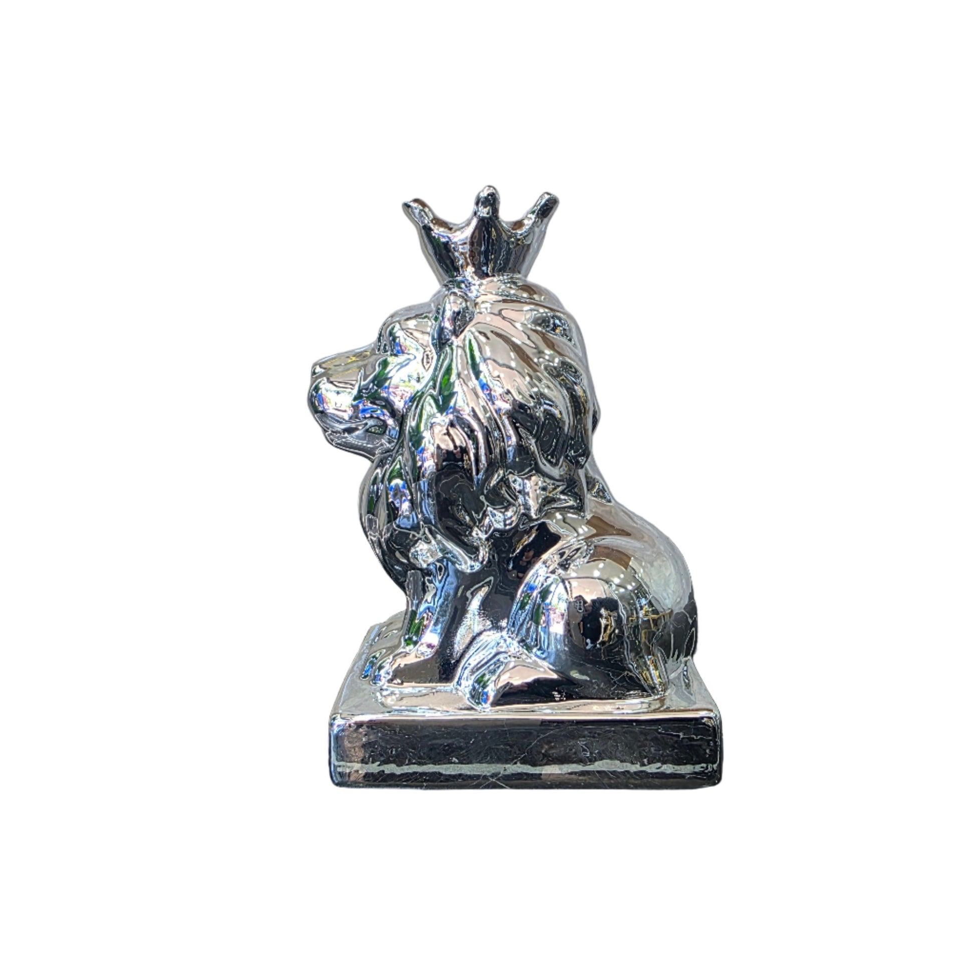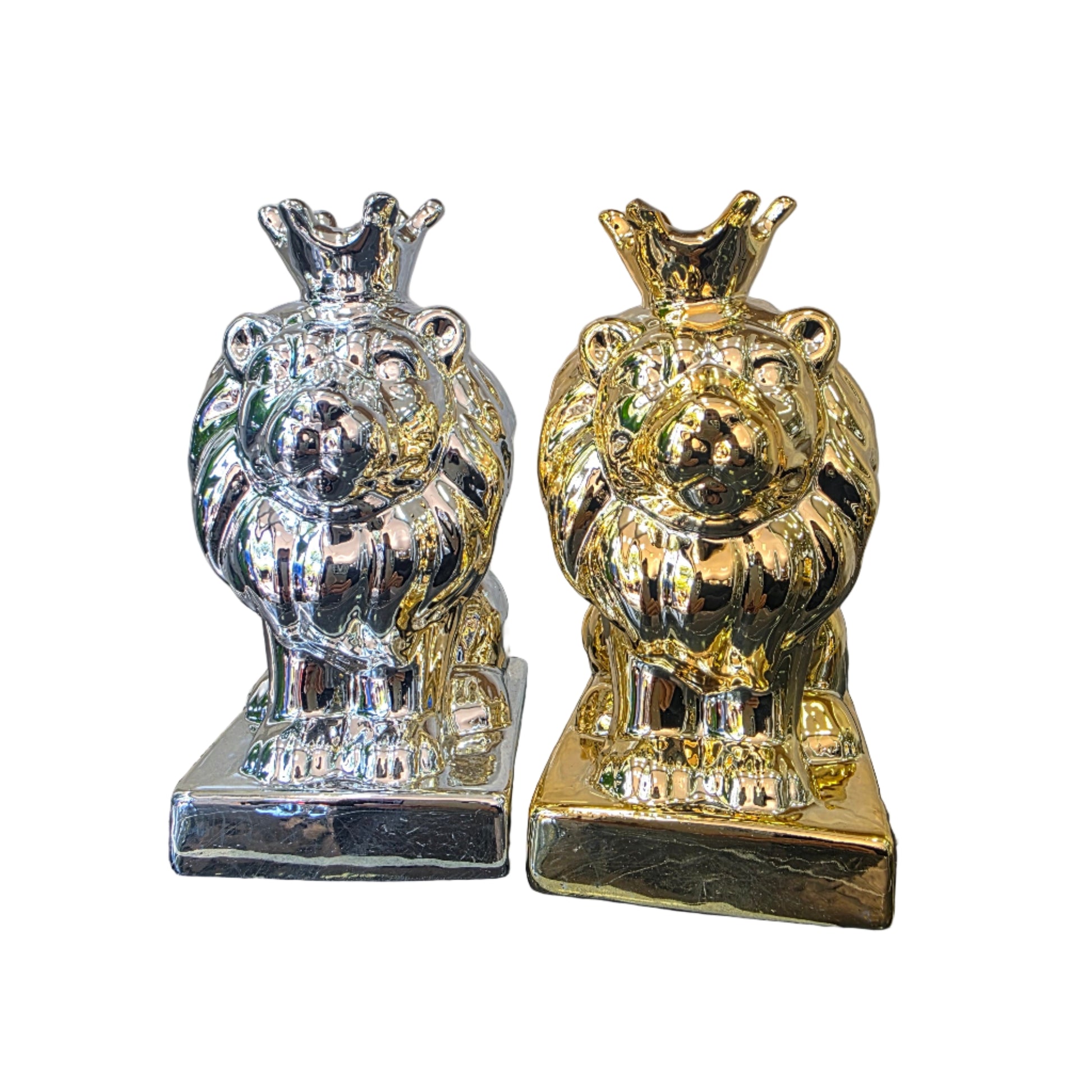 Estas imponentes figuras de león en acabado plateado y dorado son el complemento perfecto para añadir un toque de elegancia y sofisticación a cualquier espacio. Inspiradas en la majestuosidad y fuerza de estos imponentes felinos, estas esculturas capturan la esencia del león a través de detalles meticulosos y formas fluidas.