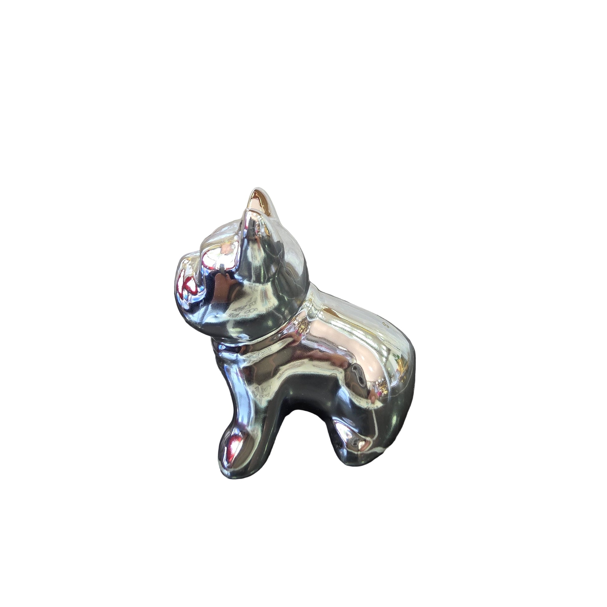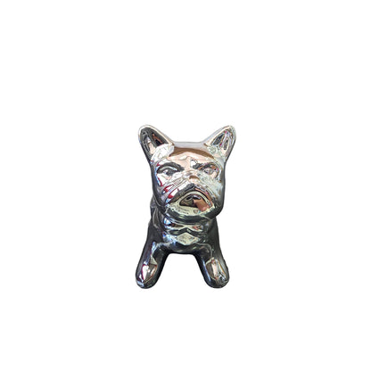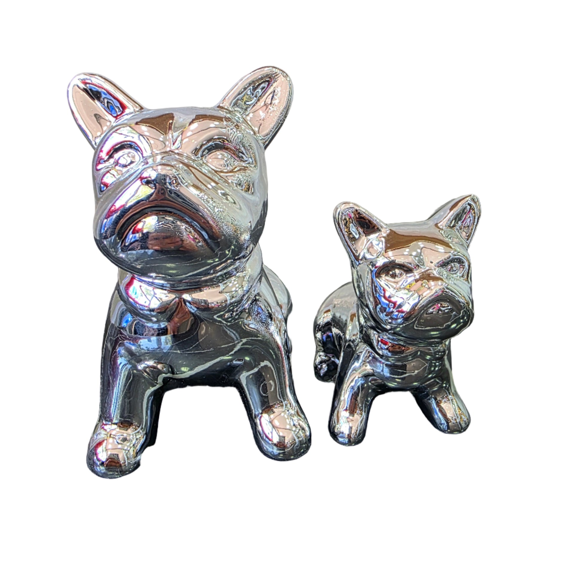 Esta elegante decoración de bulldog combina la majestuosidad del dorado con la sofisticación del plateado, creando una pieza única que atraerá todas las miradas.
