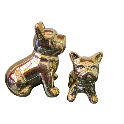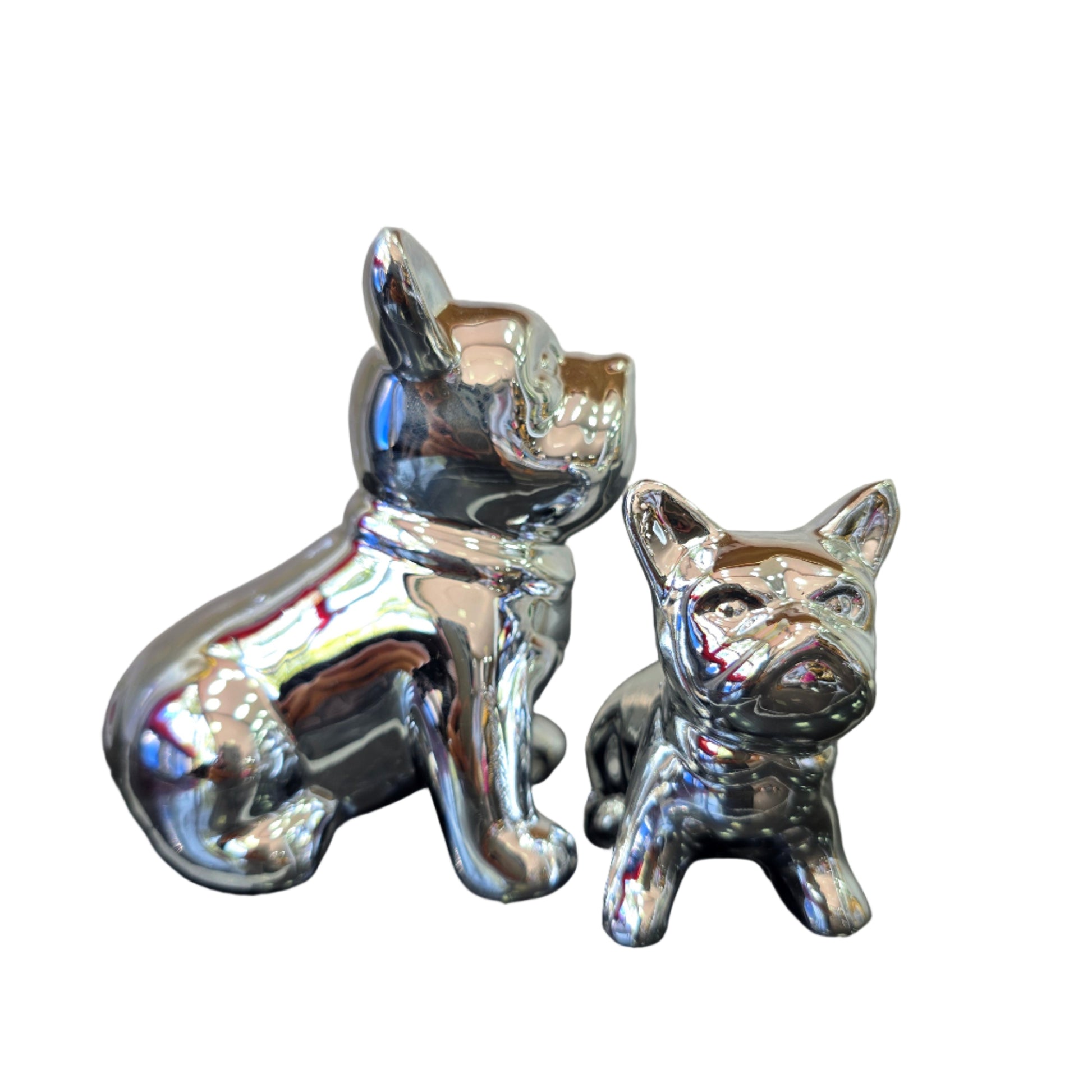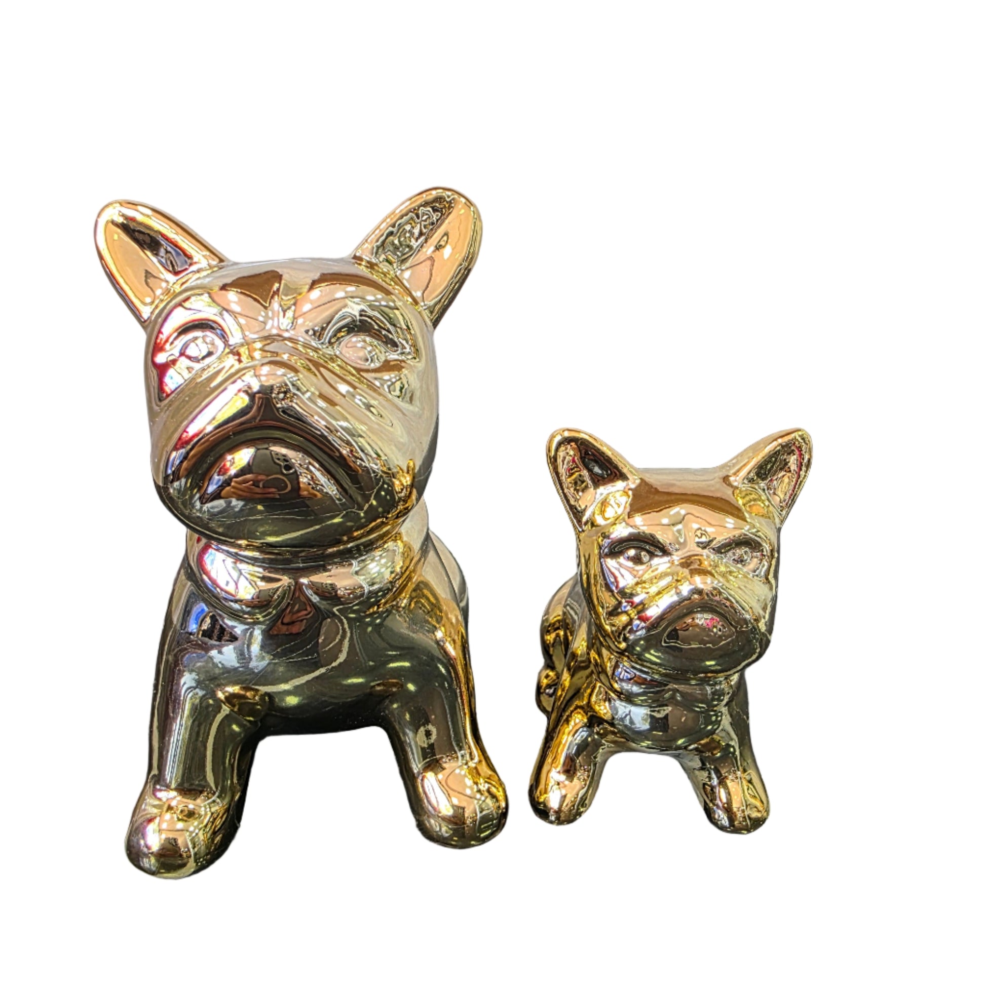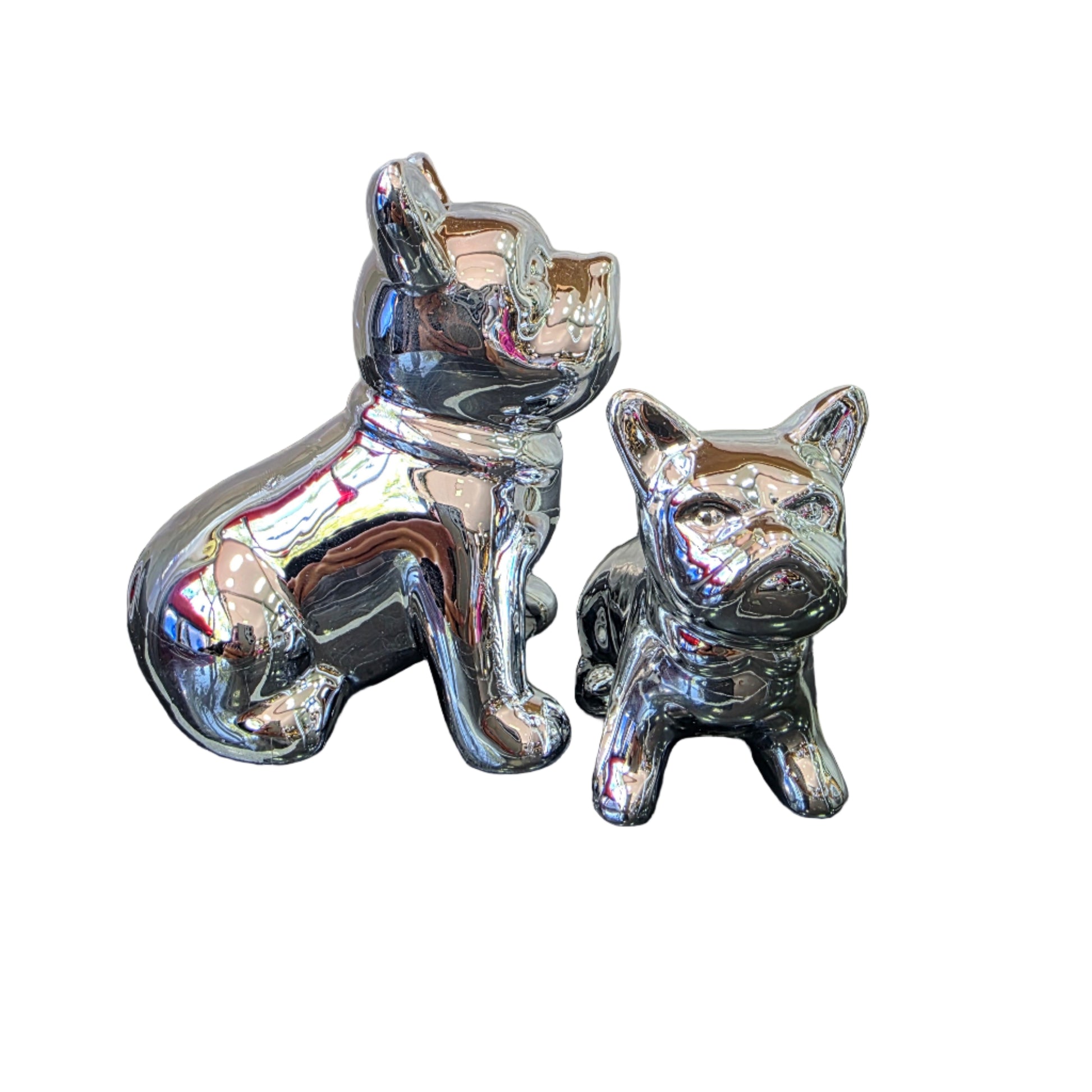 Esta elegante decoración de bulldog combina la majestuosidad del dorado con la sofisticación del plateado, creando una pieza única que atraerá todas las miradas.