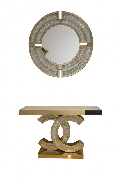 Este set de espejo y arrimo es una declaración de estilo que elevará la elegancia y el glamour de cualquier espacio. Ya sea en una entrada, sala de estar o dormitorio, este conjunto agrega un toque de lujo y refinamiento.