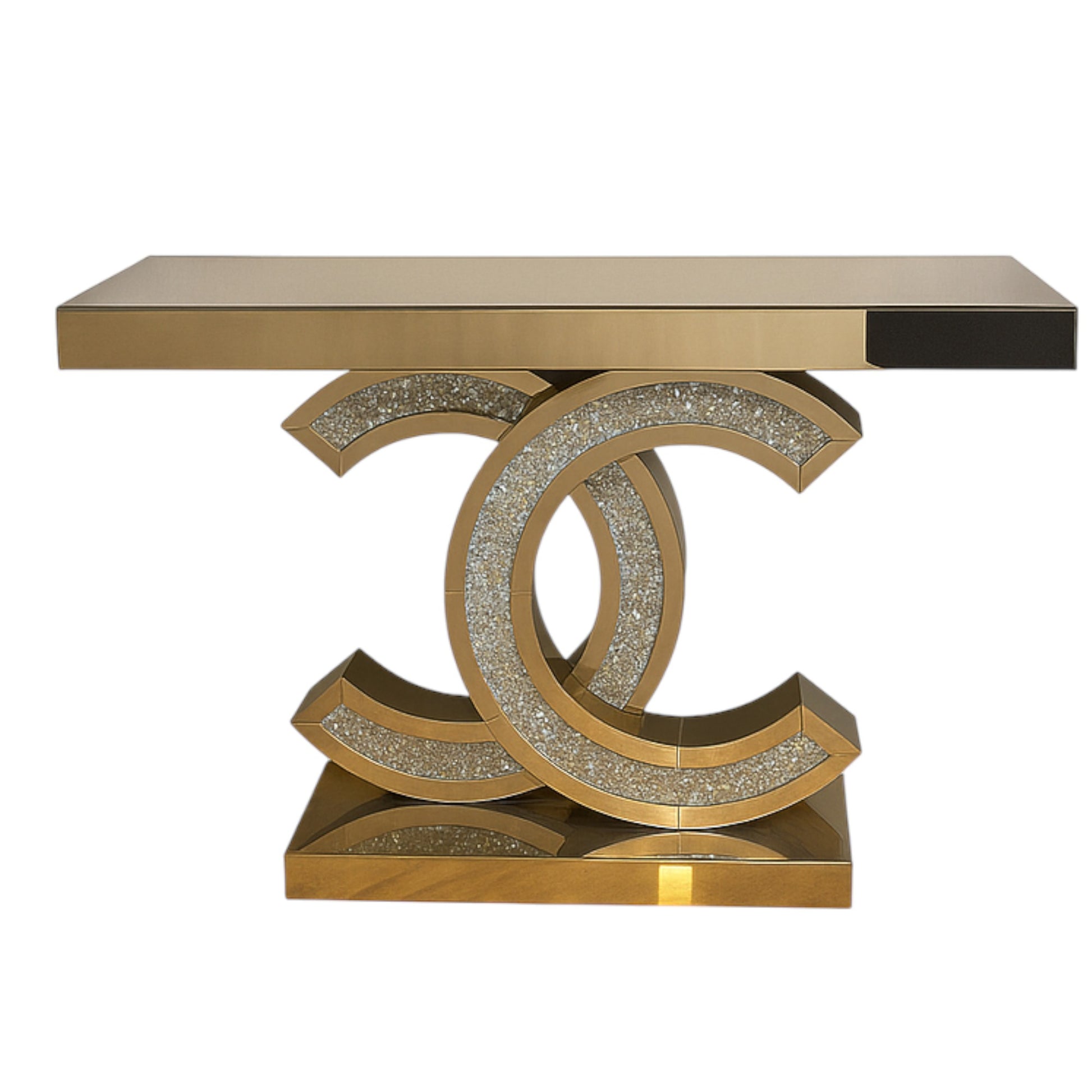 - Superficie de espejo con acabado brillante y detalles de cristal