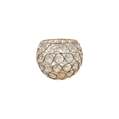 Este conjunto de tres candelabros de cristal facetado y estructura dorada es una pieza decorativa de gran belleza y refinamiento. Cada uno de los candelabros cuenta con un diseño geométrico de cristales tallados que refractan la luz de manera deslumbrante, creando un efecto luminoso y brillante.