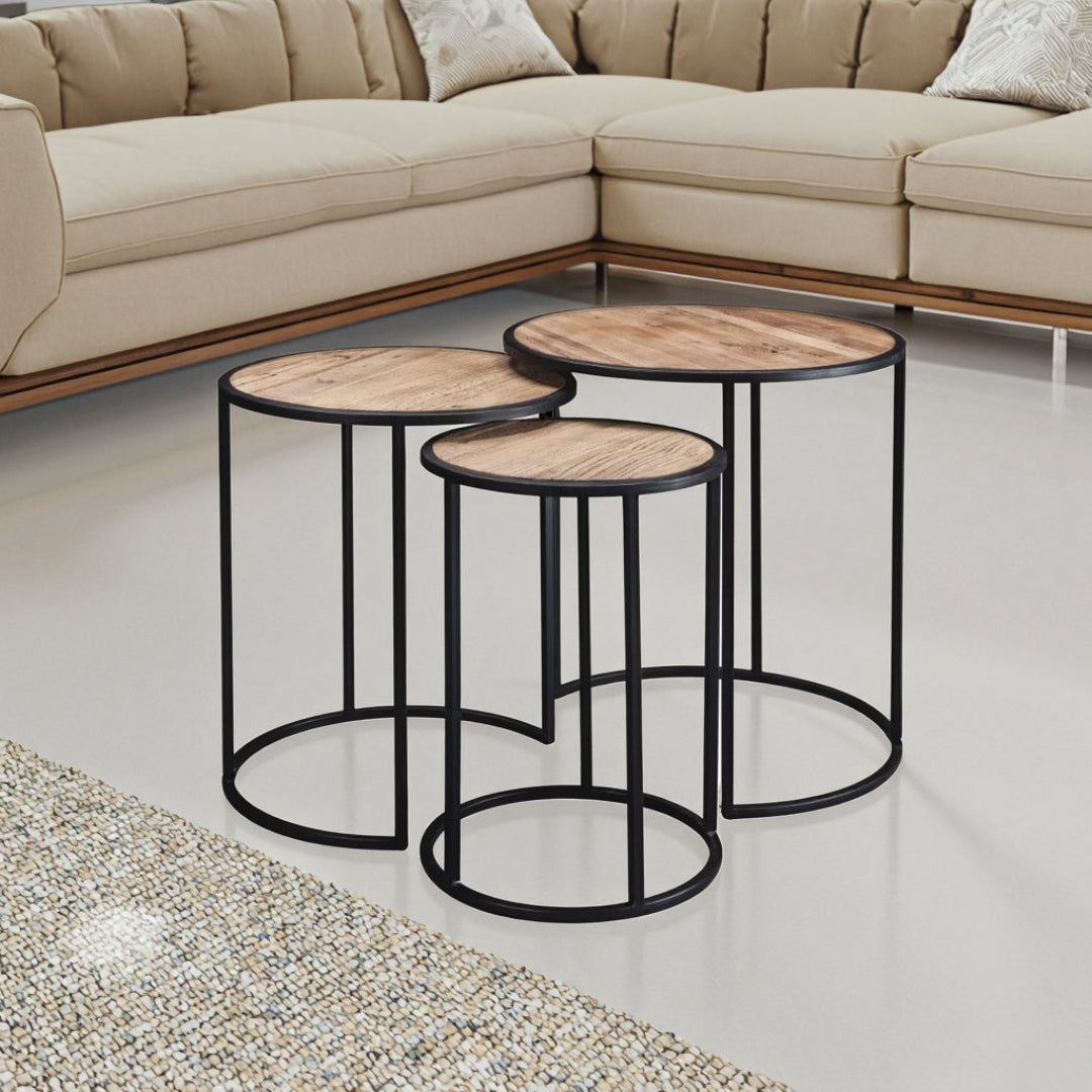 El Set de Mesas “Zen combina la resistencia del metal negro con la calidez natural de los tableros de madera, creando un diseño industrial moderno con un toque acogedor y sofisticado. Perfecto para salas, livings o espacios de decoración contemporánea, este set aporta funcionalidad y estilo en cualquier rincón del hogar.